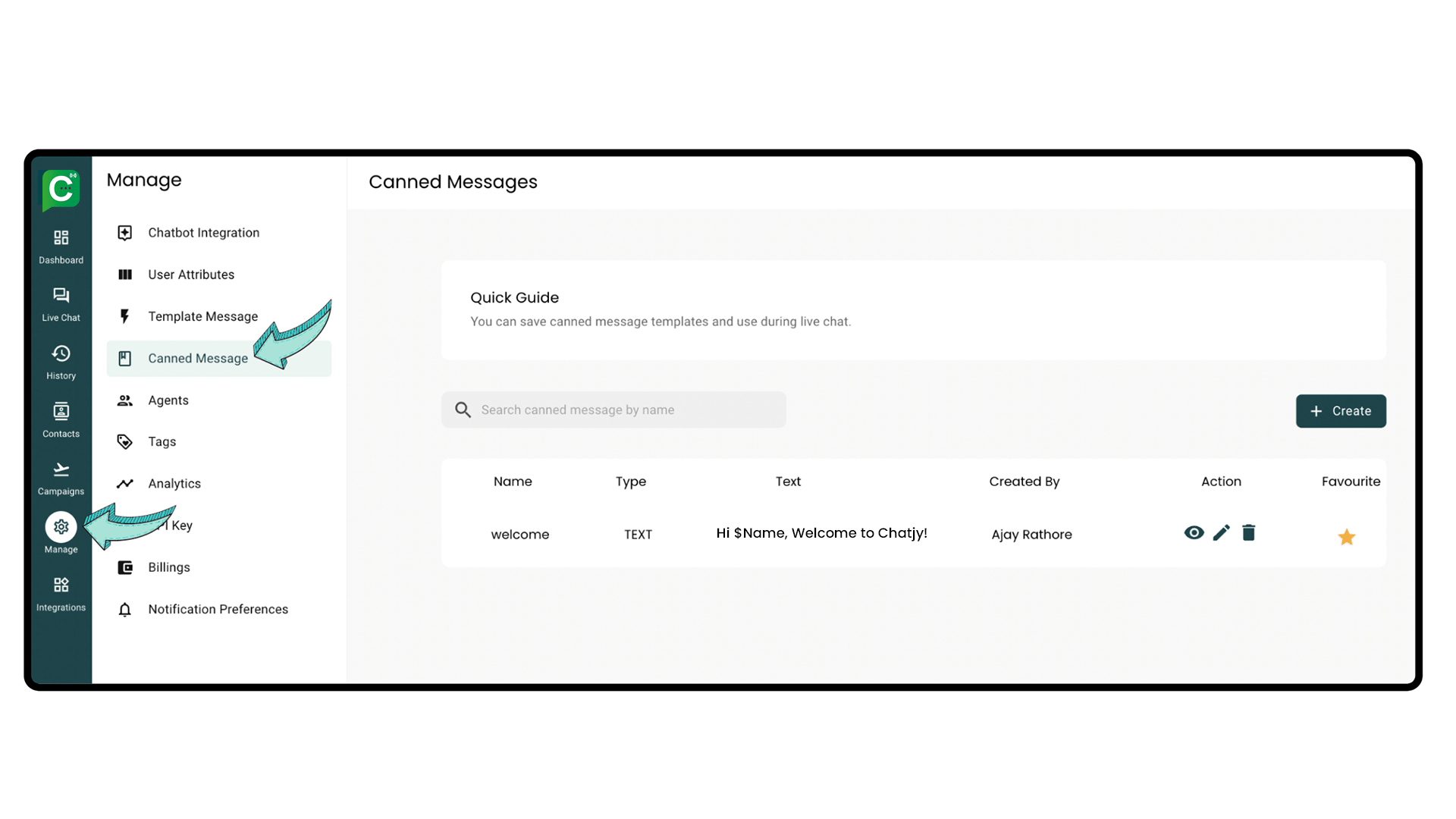 Canned Messages can be found in the Manage Section, as shown in the image to the left.