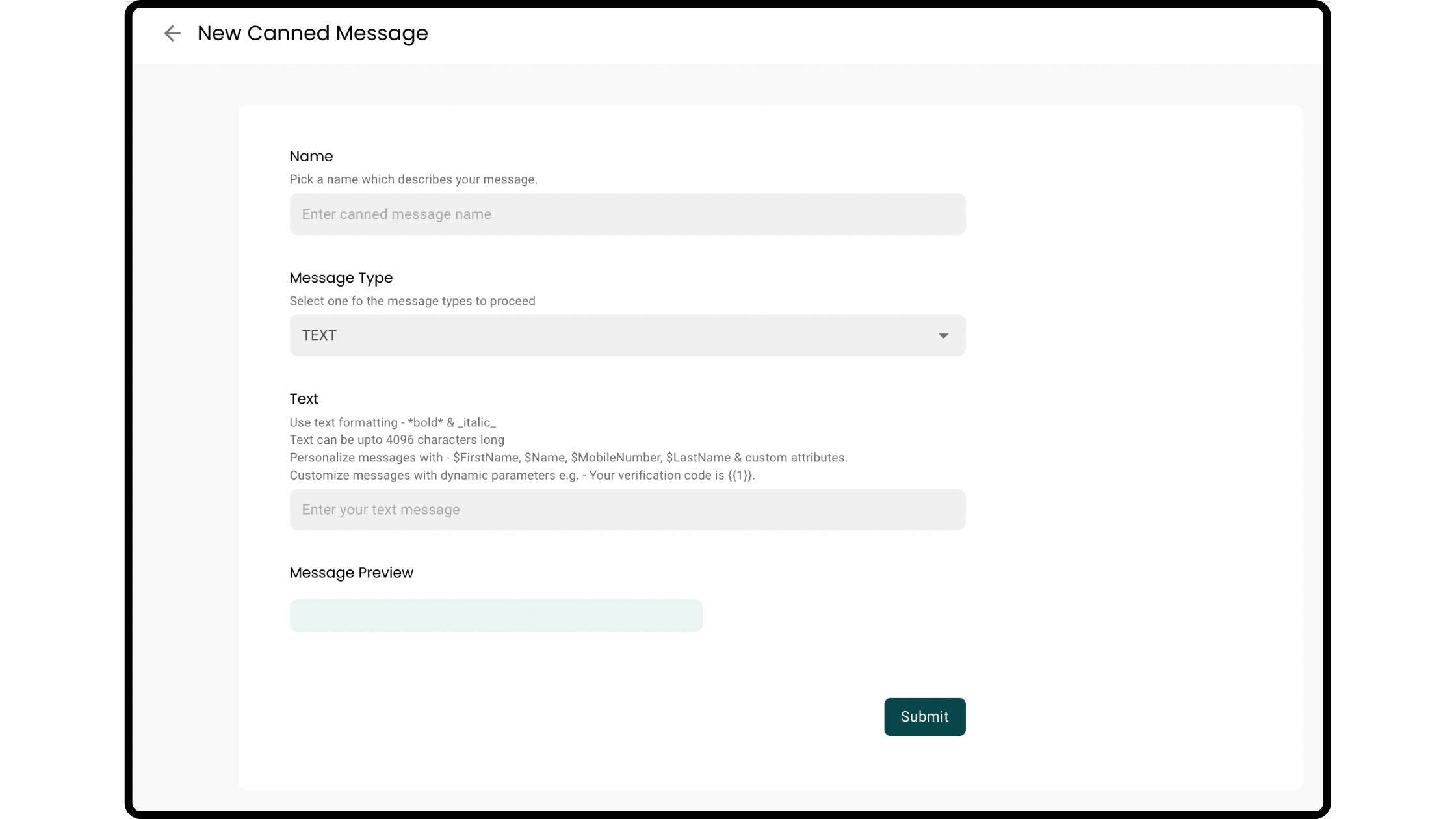 To have quick access to the canned message, choose a name that closely resembles the use case surrounding the content.