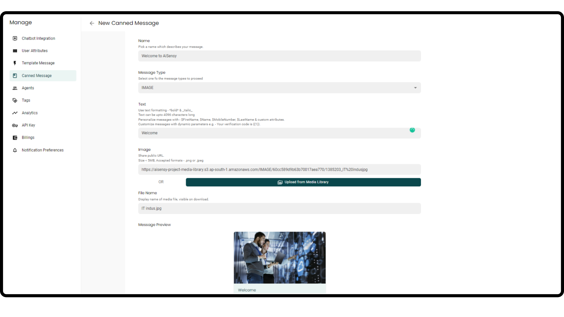 Depending on your needs, you can also add images, files, audio, and videos as canned messages.