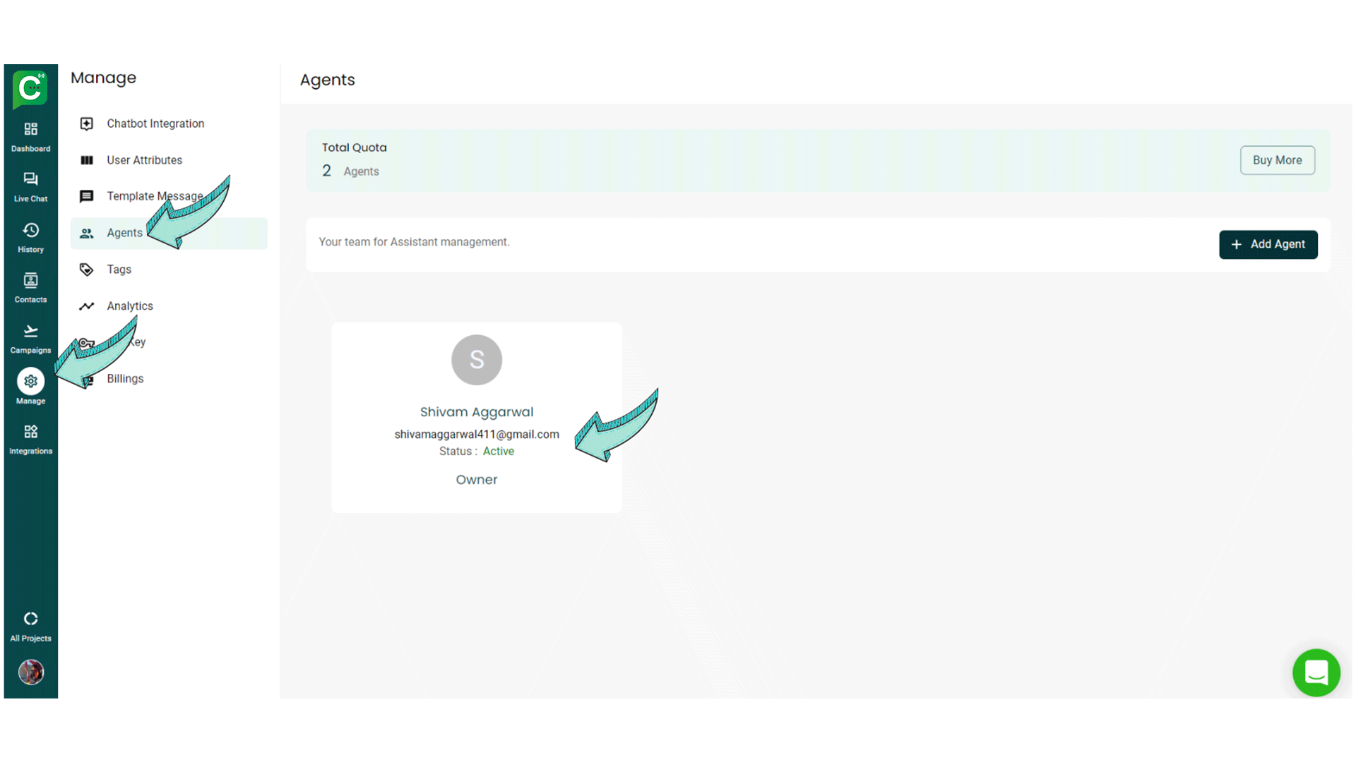 Go to the Agents Page in the Manage Section once you have the owner’s access.