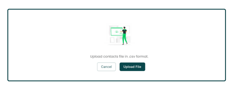 After pressing the Import button, a window will open in which you must upload the contacts file. To upload a file, click “Upload File” and choose a file on your computer. The file should be formatted as follows. csv