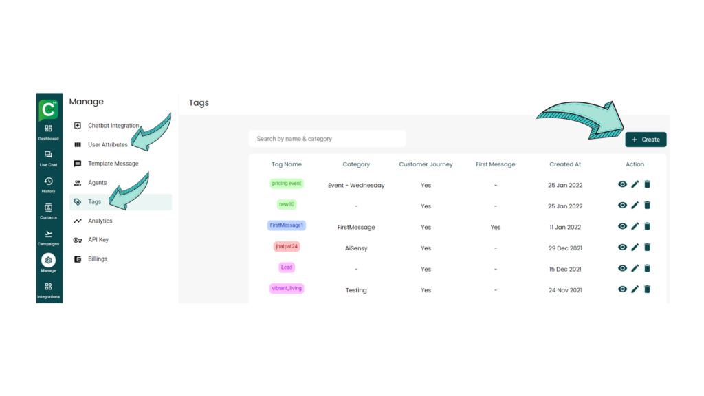 Create Tags & Attributes with the same name in the Chatjy App in order to add contacts to Chatjy with Tags & Attributes like email, source, etc.