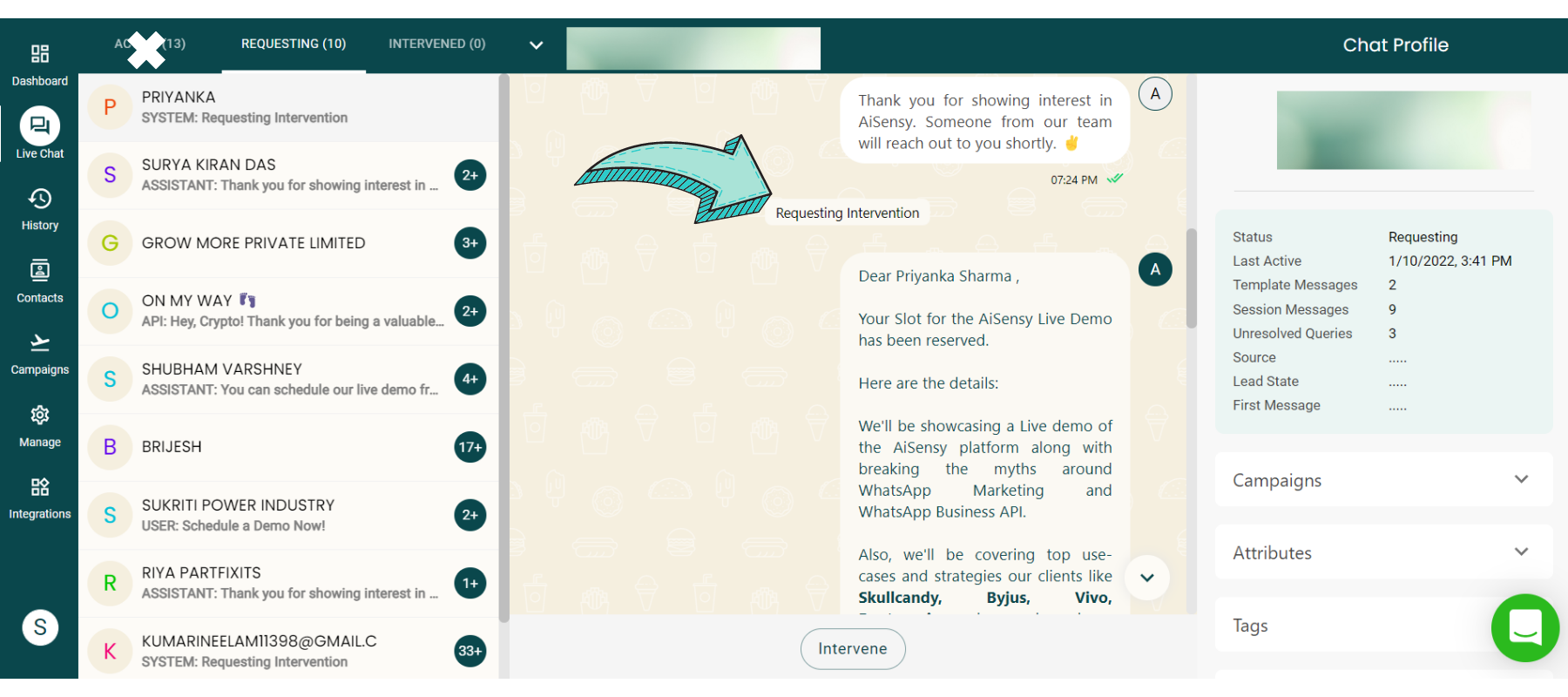 As a result, without the WhatsApp Chatbot, you can only interact through human intervention.